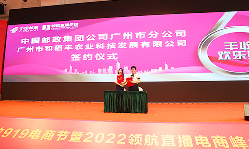 值此会议期间,在各位领导于现场嘉宾得见证下,和稻丰等几家企业与与广州邮政签署了合作协议,持续扩大惠农生态圈,共同为乡村的经济发展、共同富裕贡献一份力量。