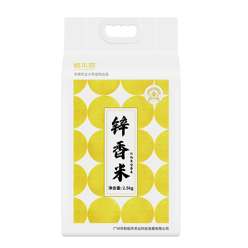 产品名称:稻本香锌香米 配料:大米 质量等级: 大米一级 净含量: 2.5kg 执行标准:GB/T 1354 贮藏方法:置通风、阴凉、干燥处 食用方法:煮粥或煮米饭食用,米水比为1:1.1 保质期:12个月 产 地:广州市从化区